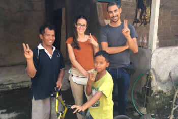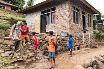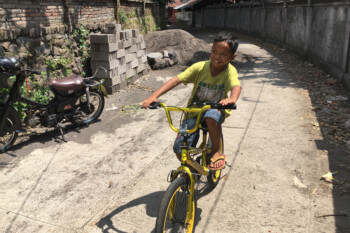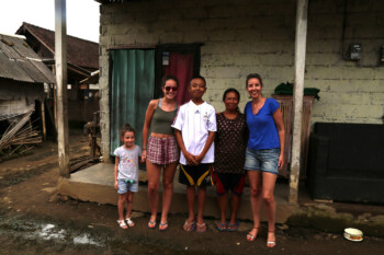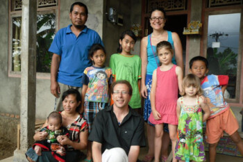 Kami disambut oleh Kadek Buda, koordinator lapangan di situ. Kami pergi ke rumah Gede di mana kita menghabiskan waktu untuk duduk di teras rumahnya yang sederhana, ayahnya menawari kami minuman dan kue. Kami memberi mereka beberapa oleh-oleh untuk mengucapkan terima kasih atas keramahan mereka dan kemudian kami semua pergi bersama-sama ke kota terdekat yaitu Singaraja untuk membelikan Gede hadiah. Kami ingin menawarkan dia sepeda sehingga ia bisa menikmati permainan anak-anak tapi kami ingin dia memilih sepedanya sendiri. Setelah harganya cocok, Gede memilih sebuah sepeda berwarna kuning yang tampaknya dia sukai.Kami semua kembali ke desa untuk mencoba sepedanya. Sebelumnya kami tidak mengetahui bagaimana pertemuan ini akan berlangsung dan kami tidak ingin mengganggu terlalu lama,kami tidak merencanakan untuk tinggal lama di rumahnya Gede, akhirnya kami pergi dengan cepat yang mana sangat kami sesali setelah kepulangan kami sekarang. Pada liburan kami berikutnya ke Bali, kami akan tinggal lebih lama lagi untuk menikmati pertemuan ini, yang tak ternilai harganya.”