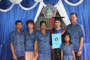 Made Sri Lestari beruntung dapat berbagi momen wisuda dengan ibu asuhnya, Patricia, dan inilah testimoninya:
