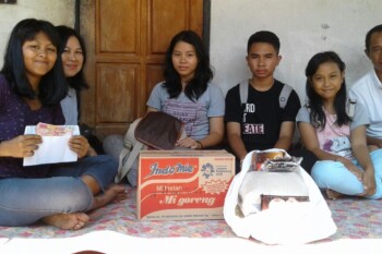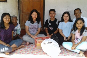 Betapa bahagia kami bertemu Wayan dan melihat perbedaan besar yang ada diantara kami. Awalnya malu melihat kami, kemudian dengan antusias Wayan mengeluarkan foto keluarga yang pernah kami kirimkan lewat pos. Kami berbagi cerita sambil melihat foto-foto yang disimpannya dengan hati-hati. Romane dan Luna sangat terkesan dan tersentuh dengan pertemuan ini. Koordinator Anak menjadi penerjemah yang memungkinkan kami untuk berkomunikasi dengan Wayan dan keluarganya. Suatu saat nanti kami berencana mengajak Wayan ke Monkey Forest di Ubud karena dia belum pernah ke sana. Wayan bercita-cita menjadi seorang koki dan dia belajar rajin di sekolah untuk mewujudkan cita-citanya. Kegiatan distribusi, bertemu dengan keluarga anak asuh, memberi makna tersendiri bagi kegiatan yayasan Anak dan komitmen kami. Romane juga memutuskan untuk menjadi orang tua asuh pada bulan Juli 2017. Selamat dan terima kasih kepada tim Anak atas kerja keras yang luar biasa dan kemampuan dalam mengorganisasi aksi solidaritas yang sangat berarti bagi anak asuh.”
